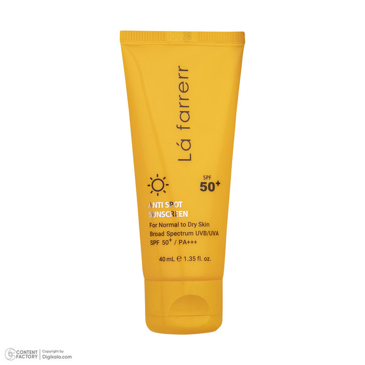 کرم ضدآفتاب و ضدلک بیرنگ لافارر مدل SPF50، مناسب پوستهای خشک و معمولی، حجم 40 میلیلیتر