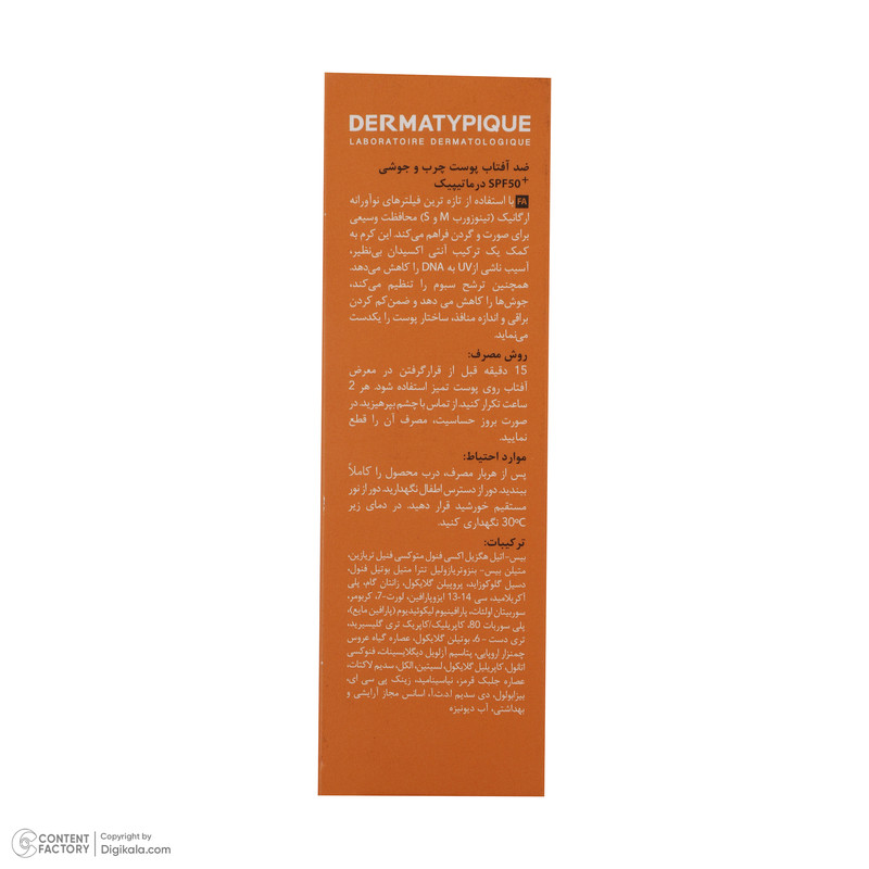 با کرم ضدآفتاب درماتیپیک مدل Anti-Acne، از پوست خود در برابر آسیبهای اشعههای مضر UVA و UVB محافظت کنید. این کرم با SPF 50 و حجم 40 میلیلیتر، انتخابی ایدهآل برای کسانی است که به دنبال ترکیبی از مراقبت پوست و محافظت قوی در برابر آفتاب هستند. این محصول فاقد چربی بوده و به طور خاص برای پوستهای چرب و مختلط طراحی شده است؛ بنابراین، اگر پوست شما مستعد جوش و آکنه است، این کرم ضدآفتاب به شما کمک میکند تا بدون نگرانی از ایجاد جوشهای جدید، از لذت یک روز آفتابی بهرهمند شوید. یکی از ویژگیهای برجسته این محصول، ضد آب بودن آن است که ماندگاری 2 ساعته روی پوست را تضمین میکند؛ بنابراین، حتی در شرایط تعریق یا تماس با آب، از محافظت کامل برخوردار خواهید بود. این کرم بدون رنگ است و به راحتی روی پوست پخش میشود، بدون اینکه اثر سفیدک یا چربی بر جای بگذارد. فرمولاسیون پیشرفته آن نهتنها از پوست در برابر آفتابسوختگی و آسیبهای ناشی از اشعههای مضر محافظت میکند، بلکه با کاهش و پیشگیری از بروز جوشها و آکنهها، پوستی سالم و شاداب را به شما هدیه میدهد.