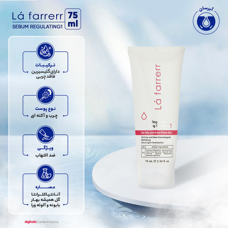 کرم کنترلکننده چربی و آبرسان لافارر مدل 01 مناسب پوستهای چرب و مستعد آکنه حجم 75 میلیلیتر