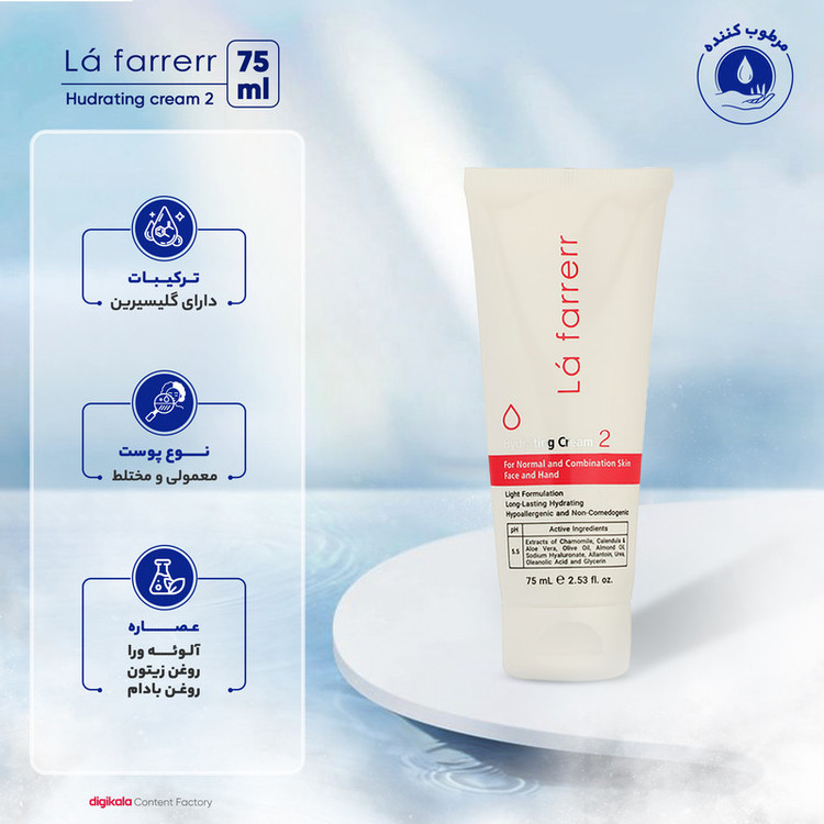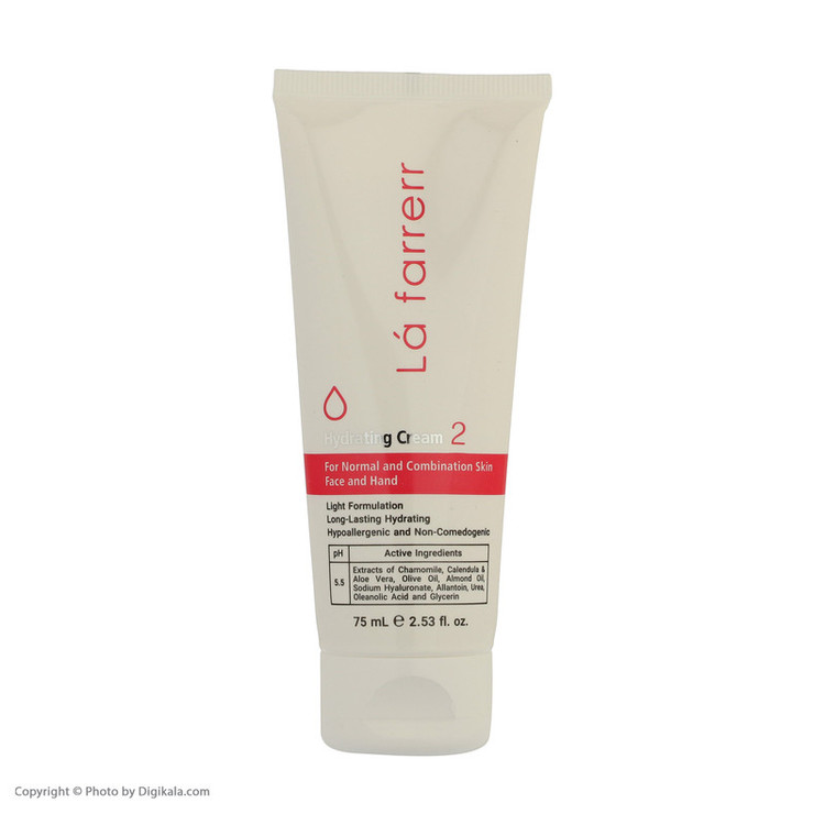 کرم مرطوب‌کننده و آبرسان دست و صورت لافارر مدل 02 مناسب پوست‌های معمولی و مختلط حجم 75 میلی‌لیتر