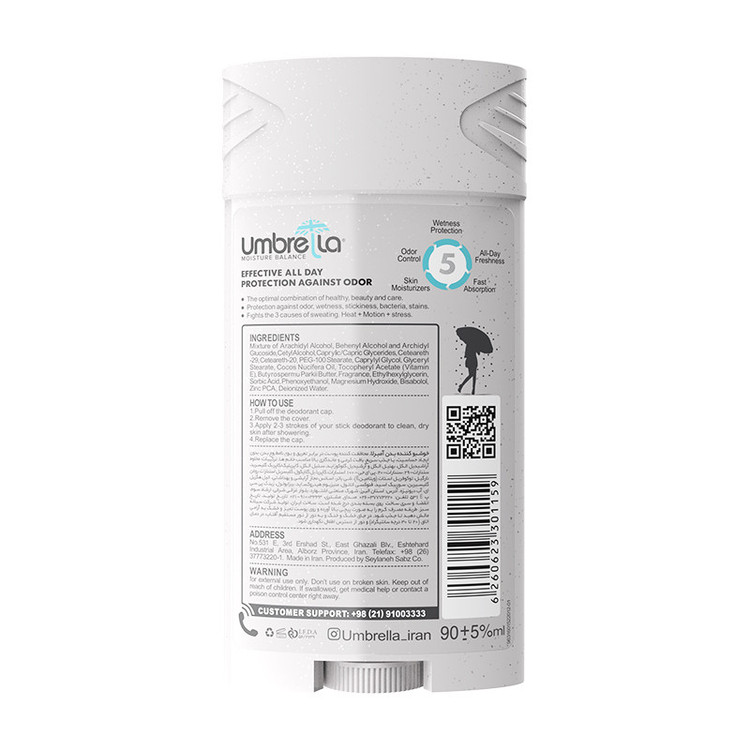 سایر مشخصات: فاقد آلومینیوم، الکل و پارابن حاوی منیزیوم حاوی زینک حاوی روغن نارگیل، گلیسیرین و شی باتر حاوی ویتامین E