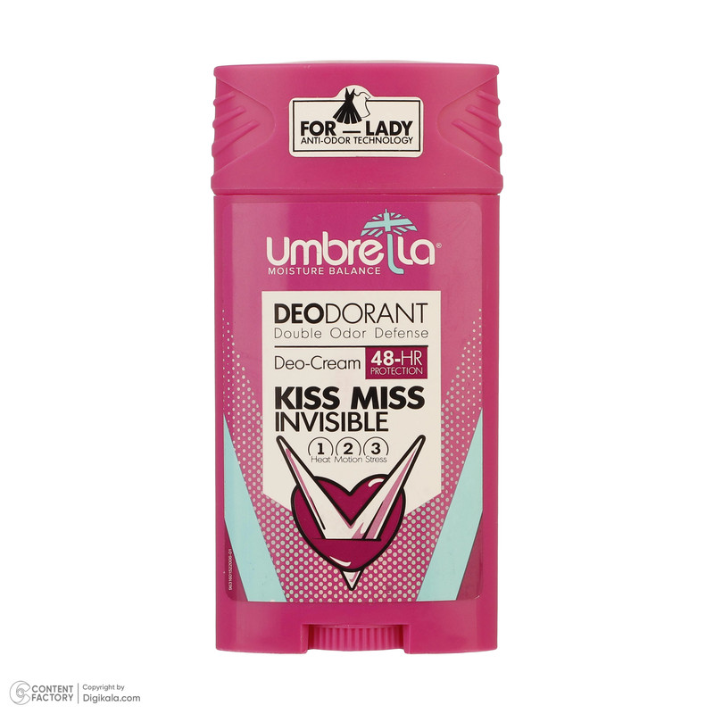 استیک زنانه آمبرلا محافظت کننده پوست در برابر تعریق وبوی نامطبوع بدن و جذب سریع که به شما این امکان را میدهد که نگران لک شدن لباس های خود نباشید .این محصول بدون ایجاد حساسیت دارای بافت کرمی با رایحه ای دلپذیر و ماندگاری بالا مناسب برای بانوان در فصل گرم می باشد.