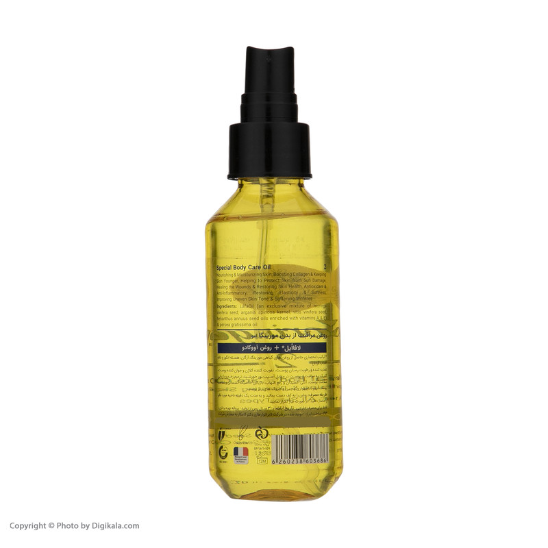 نوع عصاره : LáfaOil (لافااُیل: ترکیبی انحصاری شامل روغن‌های گیاهی مورینگا، آرگان، هسته انگور و دانه آفتاب‌گردان و ویتامین A و E) + روغن آووکادو این محصول، عاری از هر گونه ماده نگه‌دارنده است.