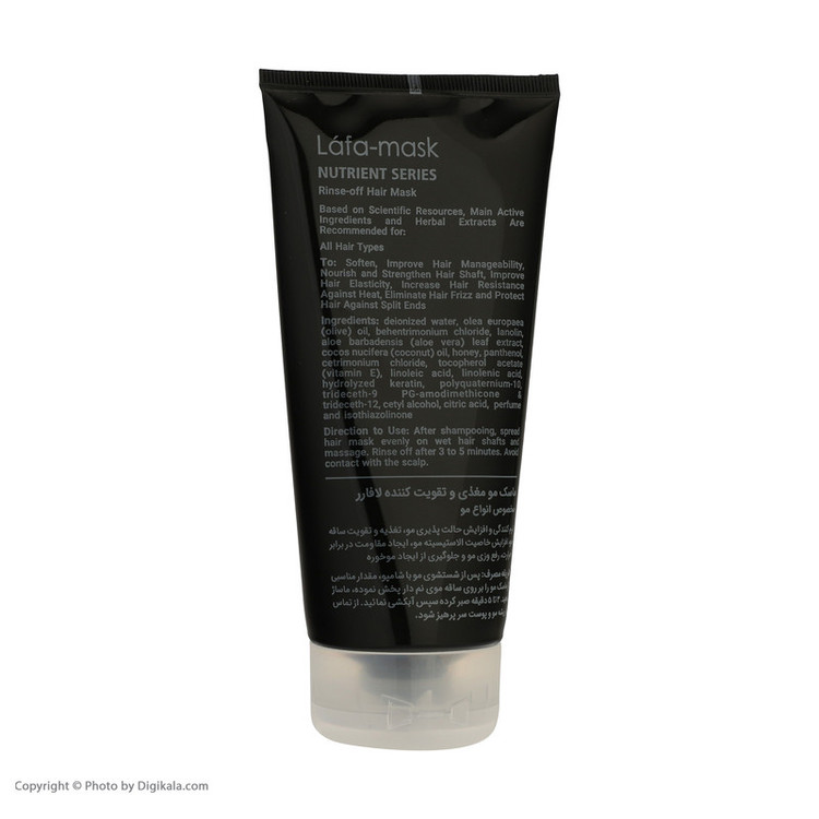 ماسک مو مغذی و تقویت کننده لافارر حاوی روغن نارگیل، عسل، کراتین هیدرولیز شده، روغن زیتون، عصاره آلوئهورا و ویتامین F میباشد که موجب لَخت کنندگی سریع، افزایش استحکام ساقه مو،نرم کنندگی موثر و افزایش خاصیت ارتجاعی مو میگردد، عصاره های گیاهی به کار رفته در این ماسک مو باعث تسهیل در شانه زدن و محافظت مو در مقابل حرارت سشوار، جلوگیری از ایجاد موخوره و همچنین ایجاد درخشندگی و حس شادابی در موها میشوند