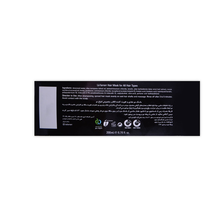 ماسک مو لافارر مدل تقویت کننده و مغذی مناسب انواع مو حجم 200 میلی لیتر