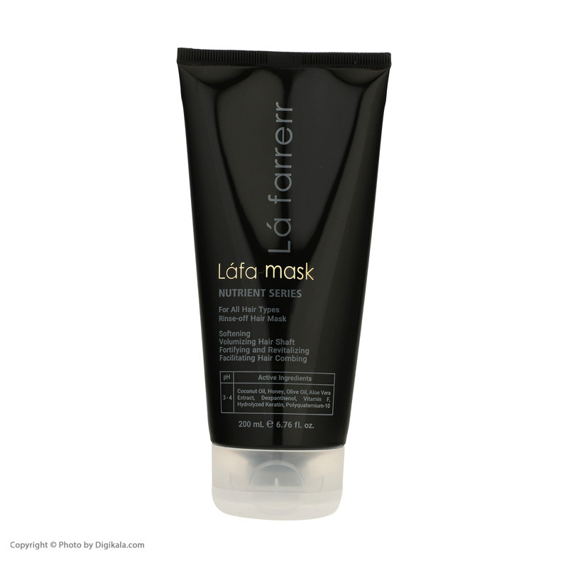 ماسک مو مغذی و تقویت کننده لافارر حاوی روغن نارگیل، عسل، کراتین هیدرولیز شده، روغن زیتون، عصاره آلوئهورا و ویتامین F میباشد که موجب لَخت کنندگی سریع، افزایش استحکام ساقه مو،نرم کنندگی موثر و افزایش خاصیت ارتجاعی مو میگردد، عصاره های گیاهی به کار رفته در این ماسک مو باعث تسهیل در شانه زدن و محافظت مو در مقابل حرارت سشوار، جلوگیری از ایجاد موخوره و همچنین ایجاد درخشندگی و حس شادابی در موها میشوند
