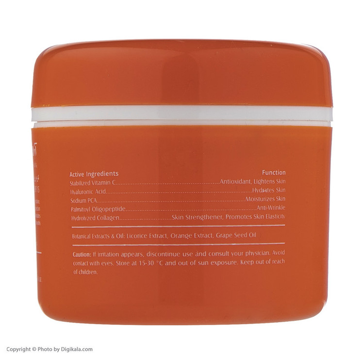 وجود ویتامین C در این کرم باعث خنثیسازی رادیکالهای آزاد، کاهش آثار خستگی، کمک به جلوگیری از ایجاد لکهای پوستی و تقویت کلاژنسازی میشود. بافت سبک و جذب سریع این کرم، استفاده روزانه آن را برای انواع پوست (بهویژه پوستهای کدر و خسته) بسیار مناسب کرده است.