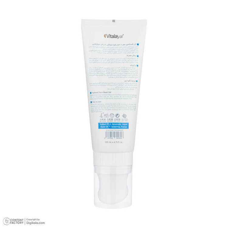 ژل شست‌وشوی صورت ویتالیر مدل هیدراویت مناسب پوست خشک حجم 200 میلی‌لیتر