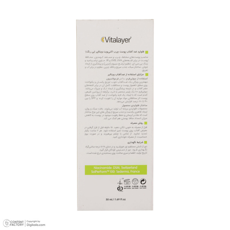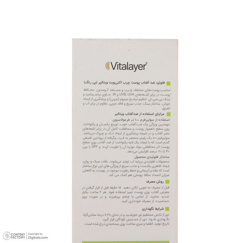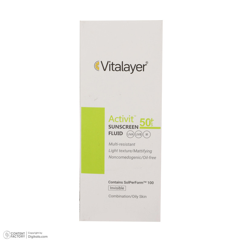 فلوئید ضدآفتاب بی‌رنگ ویتالیر SPF50 مدل Activit، مناسب پوست‌های مختلط و چرب، حجم 50 میلی‌لیتر