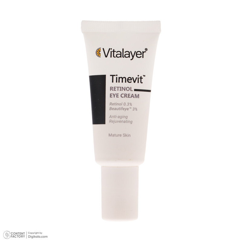 کرم دور چشم تایم ویت ویتالیر دارای ویتامین سی کپسوله است که قدرت بالایی در سنتز کلاژن دارد، این ترکیب موجب می شود خطوط پنجه کلاغی اطراف چشم رفع شده و علاوه بر آن با داشتن ترکیب رتینول که یک ضد چروک قوی و شناخته شده است باعث جوانسازی دور چشم می شوند. یکی دیگر از ترکیبات موثر آن Beautifeye است که خاصیت ضد افتادگی دارد. همچنین به کمک ریز مولکول های هیالورونیک اسید چروک های سطحی را پر کرده و باعث افزایش رطوبت ناحیه اطراف چشم می شود.با توجه به نازک و حساس بودن پوست اطراف چشم محصولاتی که برای این ناحیه استفاده می شوند باید فاقد پارابن و اسانس باشند.