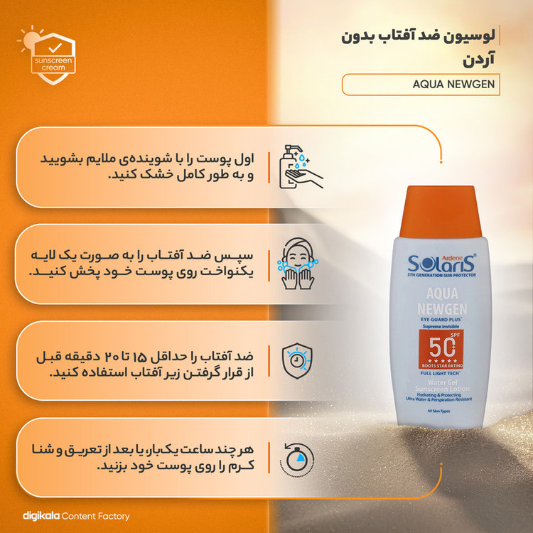 لوسیون ضدآفتاب آردن سولاریس مدل AQUA NEWGEN، حجم 100 میلیلیتر