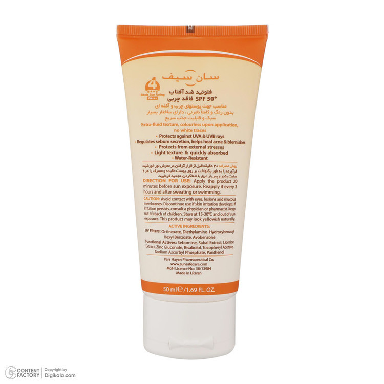 کرم ضدآفتاب بیرنگ سانسیف SPF50 مدل ACNE-FLUID مناسب پوست مختلط، حجم 50 میلیلیتر